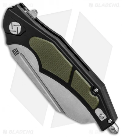 - Black aluminum handle with green G-10 inserts.