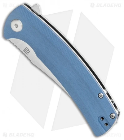 - Blueish-gray G-10 handle scales on steel liners.