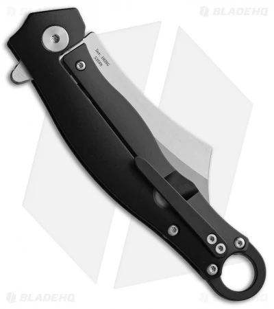 The Artisan Cutlery Corsair offers a large utilitarian design that features a dramatic cleaver blade and a removable belt ring. This model sports a carbon fiber handle, black titanium frame, and a stonewashed S35VN steel blade. Item includes a pocket clip that is reversible for left or right side tip-up carry.