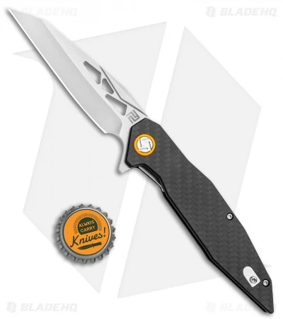 Add a modern and functional folding knife design to your collection with the Cygnus from Artisan Cutlery. This model has a carbon fiber handle and a satin finished D2 blade. The dramatic wharncliffe blade has a sharp tip and flat cutting edge for versatile performance. Add one to your collection or EDC rotation today!