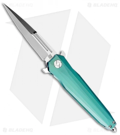The Hornet is a high-performance EDC folding knife built with a classic Italian stiletto inspired design. This Hornet model is equipped with a green titanium handle and a satin finished M390 steel blade. The blade features a double wing guard that functions as a blade flipper for smooth deployment. The Artisan Cutlery Hornet features a sleek, streamlined design for comfortable use and carry.