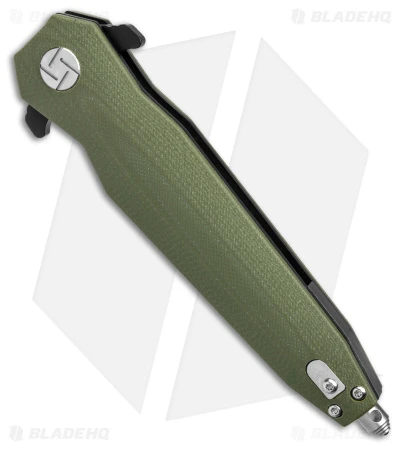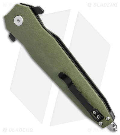 - Smooth OD green G-10 handle with a steel glass breaker.