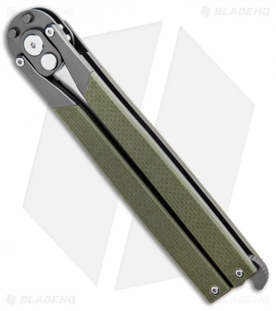 This model of the Artisan Cutlery Kinetic-Tool sports an OD green G-10 handle scale with a satin finished dull blade.