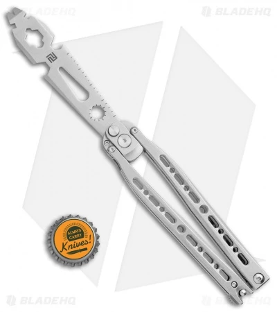 This model of the Artisan Cutlery Kinetic-Tool sports a stainless steel handle with a stonewashed multi-tool faux blade.