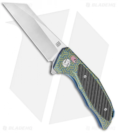 Pick up a sleek EDC flipper at an affordable price with the Artisan Megahawk. This model sports a blue and gold titanium handle with black carbon fiber inlays. The carbon fiber makes for a great look while still providing a secure, comfortable grip. A modified wharncliffe blade accentuates the impressive modern design.