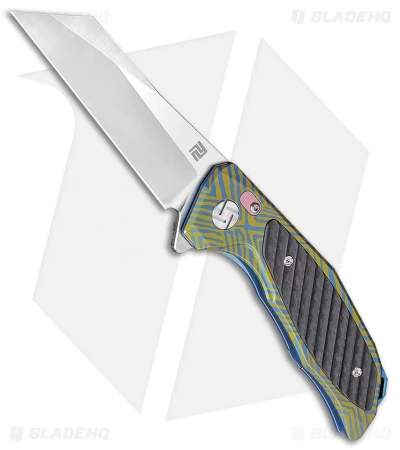 Pick up a sleek EDC flipper at an affordable price with the Artisan Megahawk. This model sports a gold and blue titanium handle with black carbon fiber inlays. The carbon fiber makes for a great look while still providing a secure, comfortable grip. A modified wharncliffe blade accentuates the impressive modern design.