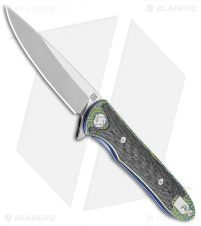 The Artisan Cutlery Small Shark was built tough and lightweight for all of your everyday carry needs. This Shark model sports a gold and blue titanium frame lock handle with a carbon fiber inlay. The Shark is a full-size folding knife that has been streamlined for maximized carrying comfort. The hardware provides a nice accent to the gentlemen’s carry design. A reversible deep carry pocket clip finishes off this stunning Shark model.