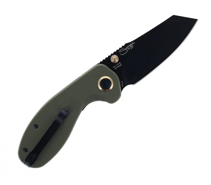 CJRB Gobi Folding Knife Natural Green G10 Handle AR-RPM9 Upswept Black Plain Blade CJ1906-BNTG