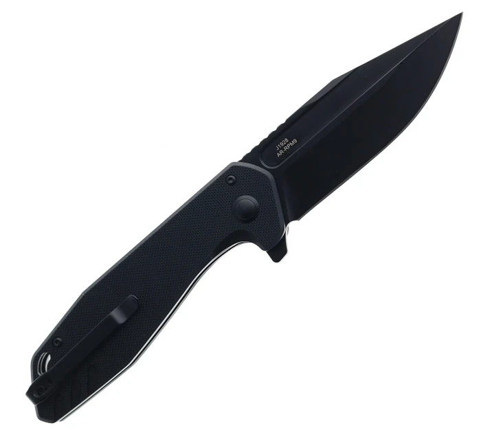 CJRB Resource J Folding Knife Gray G10 Handle AR-RPM9 Drop Point Plain Black Blade J1932-BGY