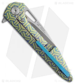 Artisan Cutlery Small Archaeo Frame Lock Flipper Knife Blue/Green CF (3″ Satin)