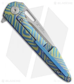 Artisan Cutlery Small Archaeo Frame Lock Flipper Knife Green/Blue CF (3″ Satin)