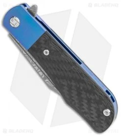 Artisan Cutlery Small Hyperion Bolster Lock Knife CF/Blue Ti (3″ Damascus)